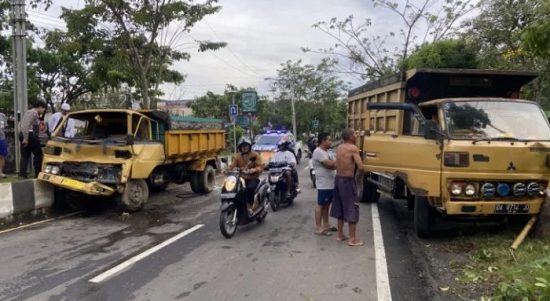 PARINGIN, KALIMANTANLIVE.COM – Sebuah truk menabrak truk lainnya di Jalan A Yani