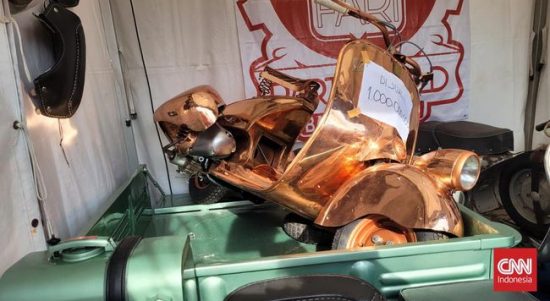 BALI, KALIMANTANLIVE.COM – Sepeda motor Vespa hasil replika yang dibuat dari tembaga